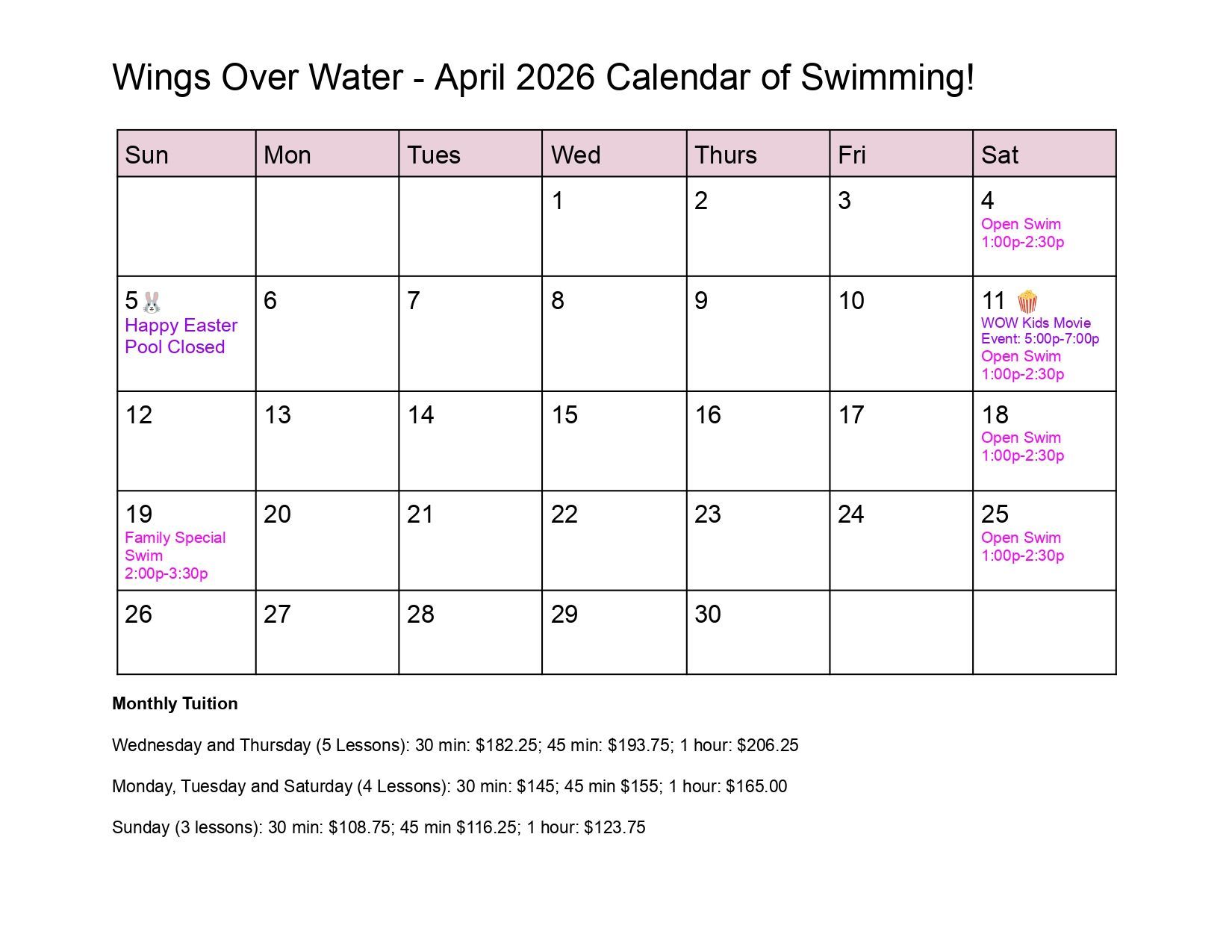 Stay updated with our holiday closures and special events. Our calendar ensures you won't miss a beat, helping you plan for family swims, private lessons, or even pool parties.